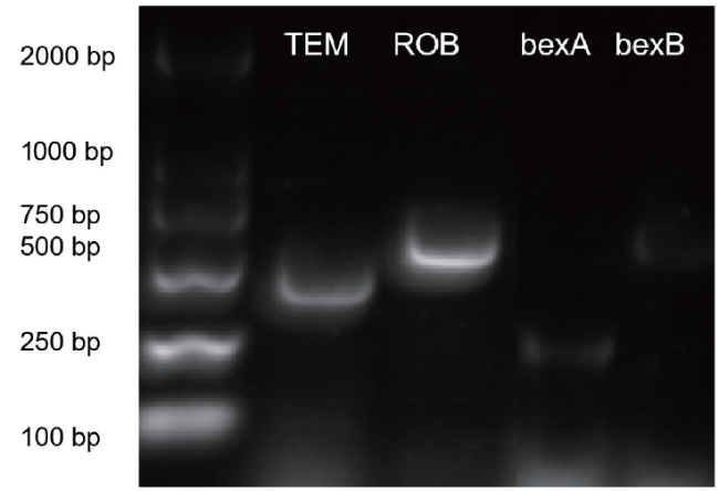 | TEM | 正向:5’-TGGGTGCACGAGTGGGTTAC-3’ | 526 | 57℃ |