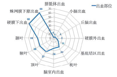 表1 颅内出血部位数量与继发性脑梗死的相关性 |