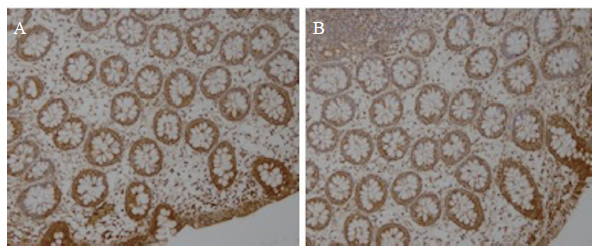 + T细胞产生大量IL-4和IL-5,单个IFN-γ正常或减少,说明UC的发生和发展与Th1/Th2的失衡强烈相关。TLR4是固有免疫系统识别病原微生物的主要受体,可以识别入侵病原体的不同分子模式,是连接天然免疫和获得性免疫的桥梁,在人体的免疫系统中起着重要的作用。同时它也在Th1/Th2的平衡中起着关键作用。近期研究发现 TLR4 的激活参与了某些过敏性炎症疾病的发病过程。Eisenbarth等(2002年)在用卵清蛋白建立的哮喘小鼠模型研究中发现,小鼠吸入低浓度脂多糖(LPS)TLR4的激动剂的卵清蛋白,支气管组织中 TLR4 低表达,从而产生抗原特异性 Th2 免疫应答而发生哮喘症状,而吸入较高浓度 LPS的卵清蛋白则诱导Th1免疫保护应答未出现哮喘症状。因此,TLR4介导的信号转导通路在探索哮喘等Th2免疫应答为主的过敏性疾病免疫防治机制中具有重要的研究价值。目前国内外对TLR4与EC发病的关系的研究尚未见报道,因此本研究从TLR4与Th2免疫应答关系探讨EC可能的发病机制。