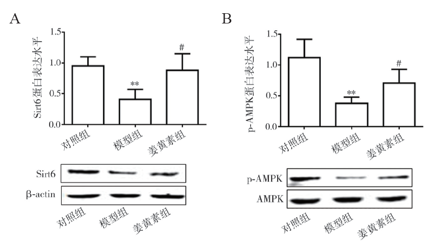 四、姜黄素对大鼠肝脏Sirt6和p-AMPK表达的影响