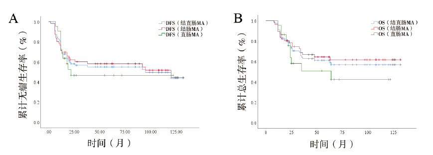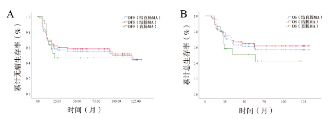 A:5年无瘤生存率;B:5年总生存率 |