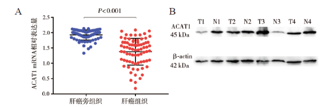[2]。因此,寻找新的分子生物标志物,对肝癌具有重要的临床意义。乙酰辅酶A酰基转移酶(ACAT),又称乙酰乙酰辅酶A硫解酶、β-酮硫解酶,在哺乳动物中存在2种亚型,分别为ACAT1和ACAT2,ACAT1位于线粒体上,ACAT2位于细胞质里