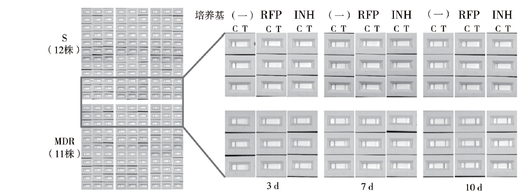 [11]?这是我们后续将要进行的实验,与此同时,扩大检测样本量,优化接种菌浓度和药物浓度,探讨更短检测时间点。另外据相关文献报道,部分MTB的MPT64表达基因存在突变,无法检测到抗原,会导致检测结果假阴性