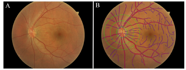 | 视网膜血管管径(μm) | 195.16±11.96 | 176.71±10.98 | 10.876 | < 0.001 |