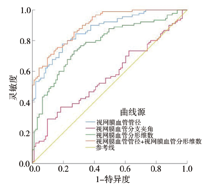 | 视网膜血管管径+视网膜血管分形维数 | 0.901 | 0.860 | 0.942 | < 0.001 | 0.756 | 0.839 | 0.54 |