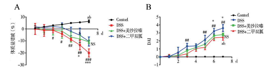 二甲双胍与美沙拉嗪在小鼠结肠炎中的疗效比较