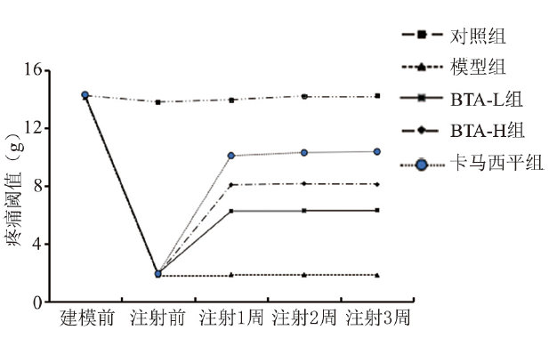 | 组 别 | 建模前 | 注射1周 | 注射2周 | 注射3周 |