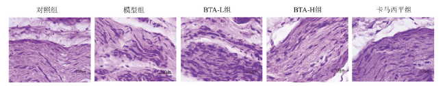 注:与对照组比较,aP < 0.05;与模型组比较,bP < 0.05;与BTA-L组比较,cP < 0.05;与BTA-H组比较,dP < 0.05。 |