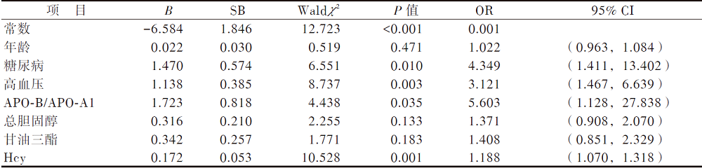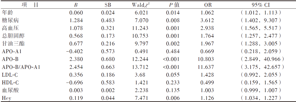 目的 分析以维吾尔族居民为主的喀什地区女性早发冠状动脉粥样硬化性心脏病(PCAD)的危险因素,为该地区有效防治女性PCAD提供依据。方法 选择住院行冠状动脉造影的喀什地区维吾尔族女性244名,根据冠状动脉造影(CAG)结果和年龄分为3组:无冠心病组(69名)、PCAD组(104例)和晚发冠心病组(71 例),比较3组患者的临床资料。采用单因素、多因素logistic回归分析PCAD的危险因素。结果 PCAD组年龄 (54.25±6.97)岁,其中因AMI就诊达42.3%,且在冠心病患者中占比高达59.4%。与无冠心病组相比,PCAD组患高血压、糖尿病比例更高,且总胆固醇、甘油三酯、载脂蛋白(APO)-B、同型半胱氨酸(Hcy)及血糖水平均更高,而白蛋白、血红蛋白均更低,比较差异均有统计学意义(P均< 0.05);但与晚发冠心病组相比,PCAD组除胱抑素C水平较低,白蛋白、APO-B较高外,2组其余指标比较差异均无统计学意义(P均> 0.05)。多因素logistic回归分析结果显示,PCAD的独立危险因素包括:糖尿病[OR=4.349,95%CI(1.411,13.402)]、高血压[OR=3.121,95%CI (1.467,6.639)]、APO-B/APO-A1[OR=5.603,95%CI(1.128,27.838)]、Hcy[OR=1.188,95%CI(1.070,1.318)]。结论 喀什地区女性冠心病患者在65岁之前发病较为常见,且糖尿病、高血压、高APO-B/APO-A1值、高Hcy水平是PCAD的独立危险因素,应早期筛查并干预。