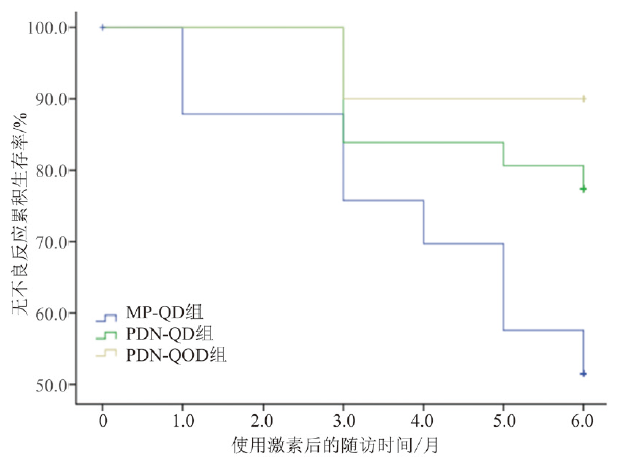 表3 激素治疗期间3组IgAN患者的不良反应发生情况 单位:例 |