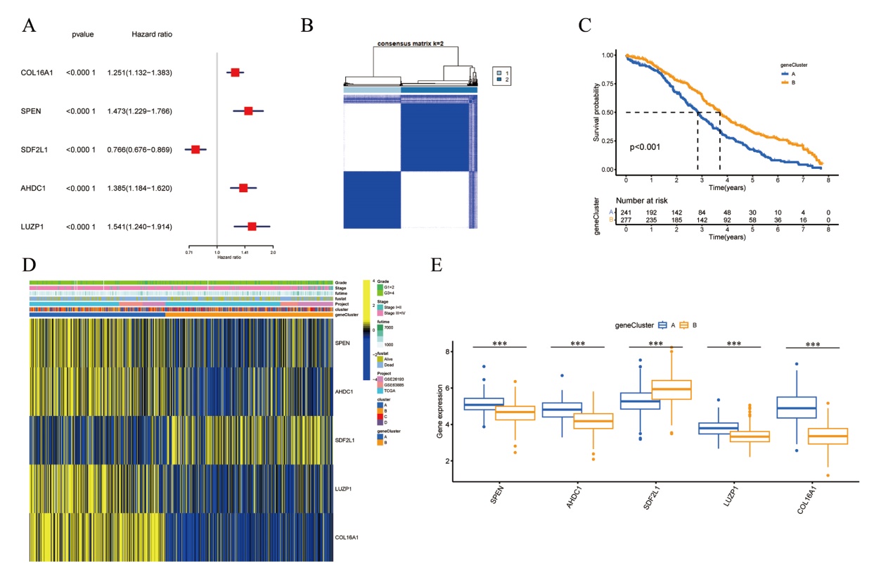 2.1 基于乳酸化修饰相关基因的预后及生存分析结果