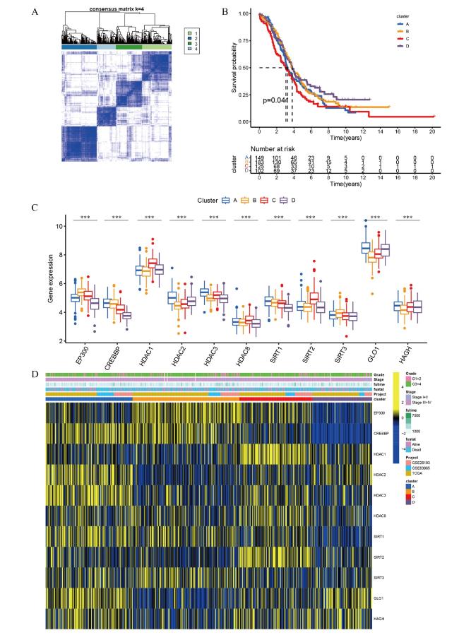 2.2 基于乳酸化修饰相关基因的无监督聚类分型