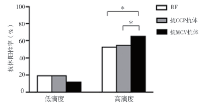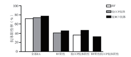 二、RA患者自身抗体阳性的分布及阳性率的比较