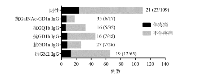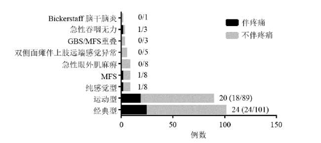 表1 伴与不伴疼痛的GBS患者临床特征比较 |