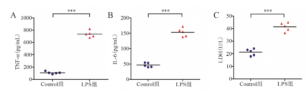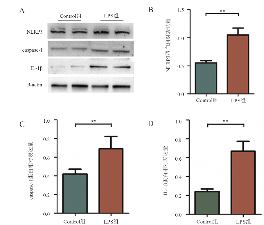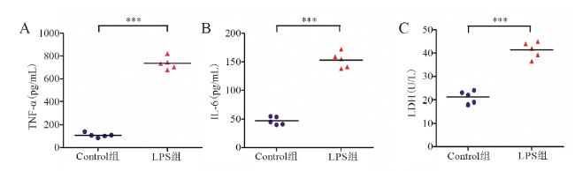本研究使用LPS刺激肾小管上皮细胞建立肾小管上皮细胞损伤模型,基于前期研究和预实验结果,选取浓度为2μg/mL的LPS刺激肾小管上皮细胞,结果表明LPS引起以细胞焦亡损伤形式为主的肾小管上皮细胞损伤过程,表现为肾小管上皮细胞生存率下降,细胞焦亡率升高,炎症因子IL-6和TNF-α、细胞损伤指标LDH水平明显升高,细胞焦亡指标NLRP3、caspase-1、IL-1β蛋白及mRNA水平升高,此研究结果与同行相关研究结果一致
