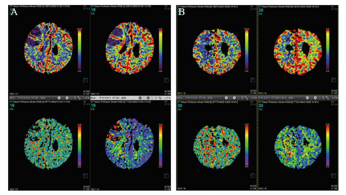 二、治疗组与对照组缺血性脑卒中患者的CTP指标比较