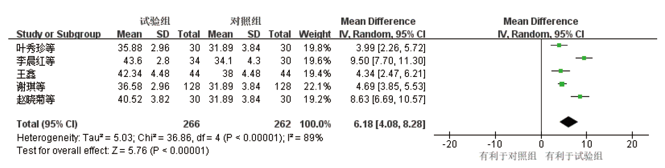 术后血清白蛋白 | 5 | 89% | <0.001 | 随机 | MD | 6.18 | 4.08~8.28 | <0.001 |