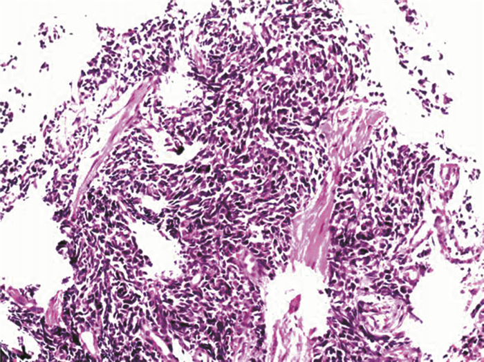 图 3 PESCC患者食管肿物 病理结果 (苏木素-伊红染色,×100) |