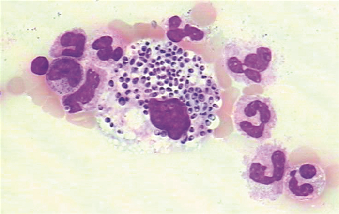 图 2 一例艾滋病合并马尔尼菲青霉败血症患儿的骨髓涂片 |
